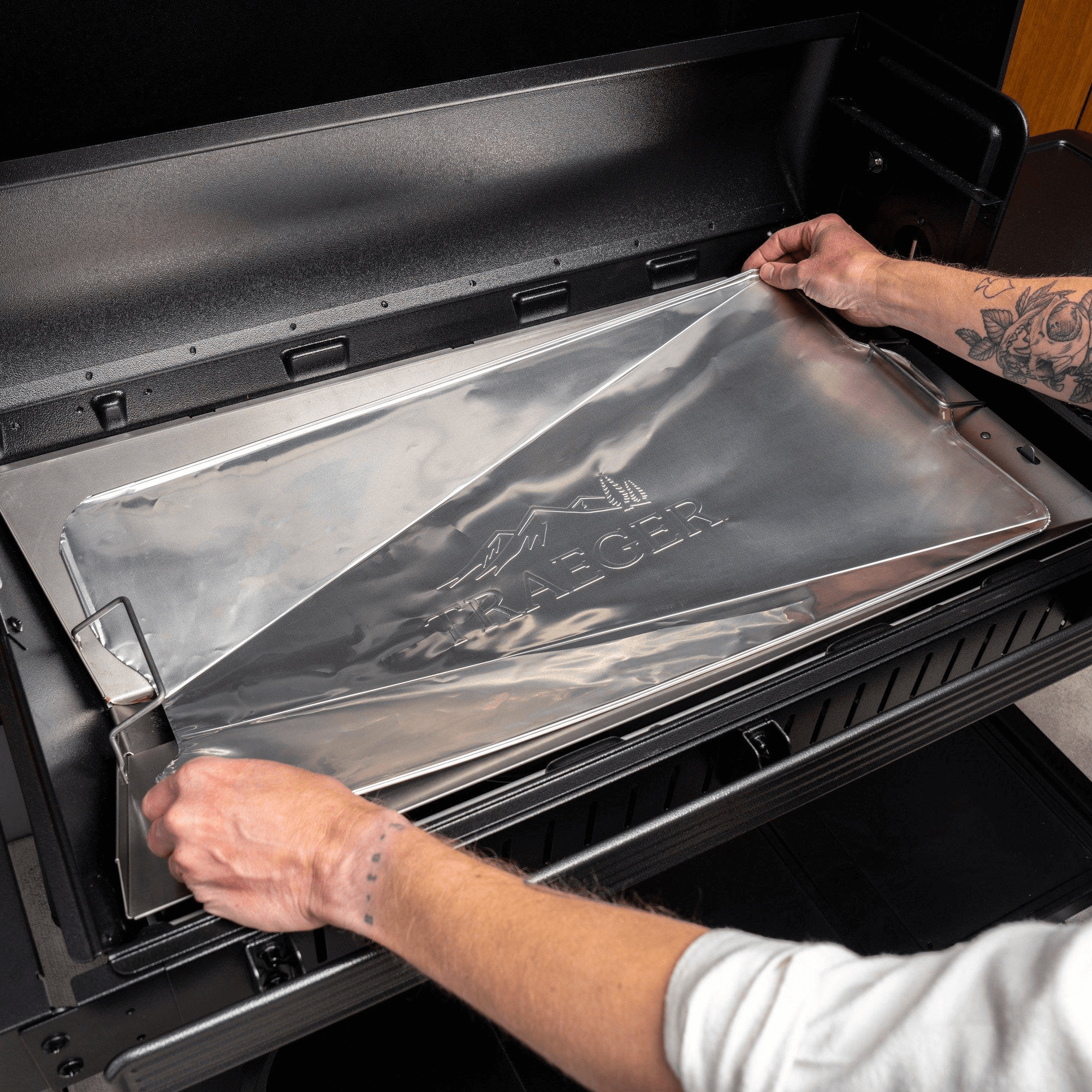 • Sacs de récupération des graisses jetables spécialement conçus pour votre barbecue Traeger. Remarque : L’utilisation de papier aluminium ou d’autres types de sacs est déconseillée.