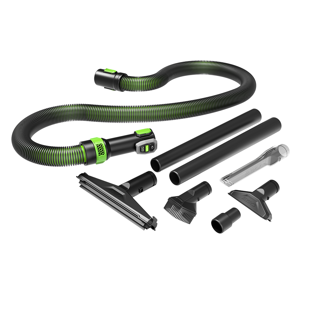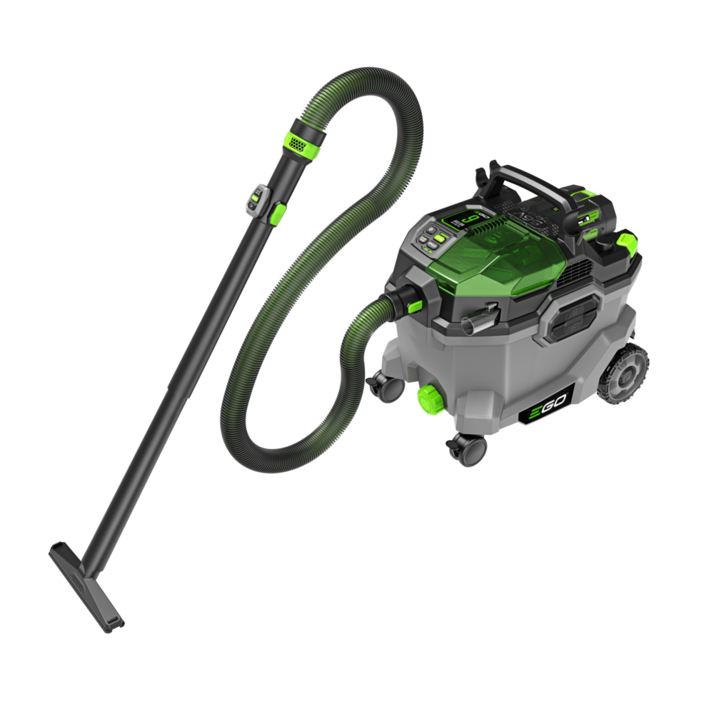 The EGO POWER+ 9 Gallon Wet/Dry Vacuum delivers up to 110CFM of powerful suction for 100-inch water lift and features convenient onboard storage for its included nozzles, extensions, and hose.