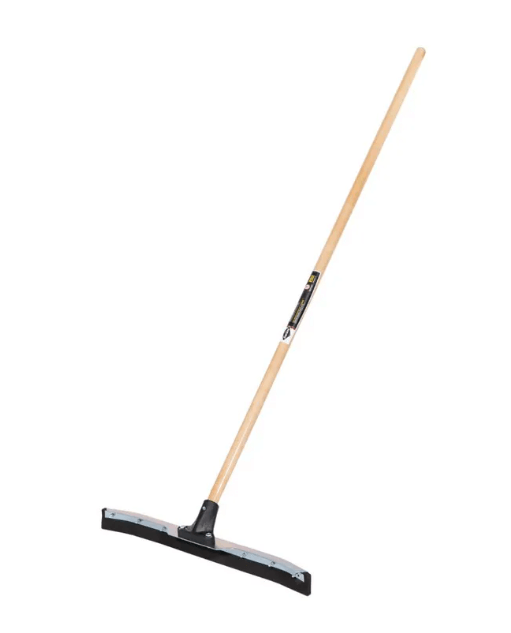 24" Assembled curved foam squeegee, Unbreakable Connector; flexes and bends, twin foam curved blades; removes water easily from uneven floor surfaces, durable steel construction, 1-1/8" x 54" hardwood handle.