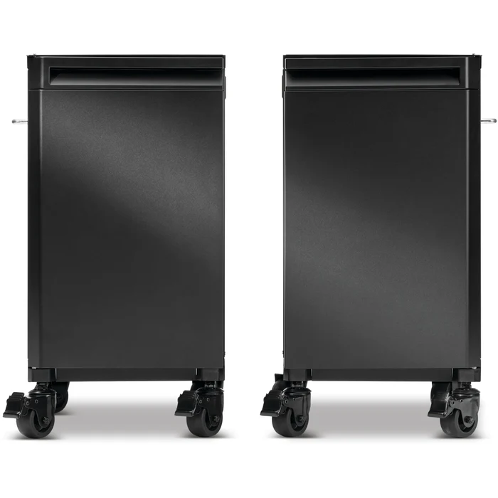 Bring smart storage and style to your grilling setup with the Phantom Prestige® Under Grill Storage Carts. These stunning, matte black, free-floating cabinets are designed to integrate seamlessly with your grill, locking securely in place and moving effortlessly as a single unit thanks to four smooth-rolling, locking caster wheels. The hidden top drawer provides quick access to your most-used tools, keeping essentials within arm’s reach. Inside, a smartly designed storage divider and built-in tool hooks offer customizable organization to keep your grilling area tidy and efficient. Whether you're prepping, cooking, or cleaning up, these storage carts make it easy to stay organized and elevate your grilling experience.